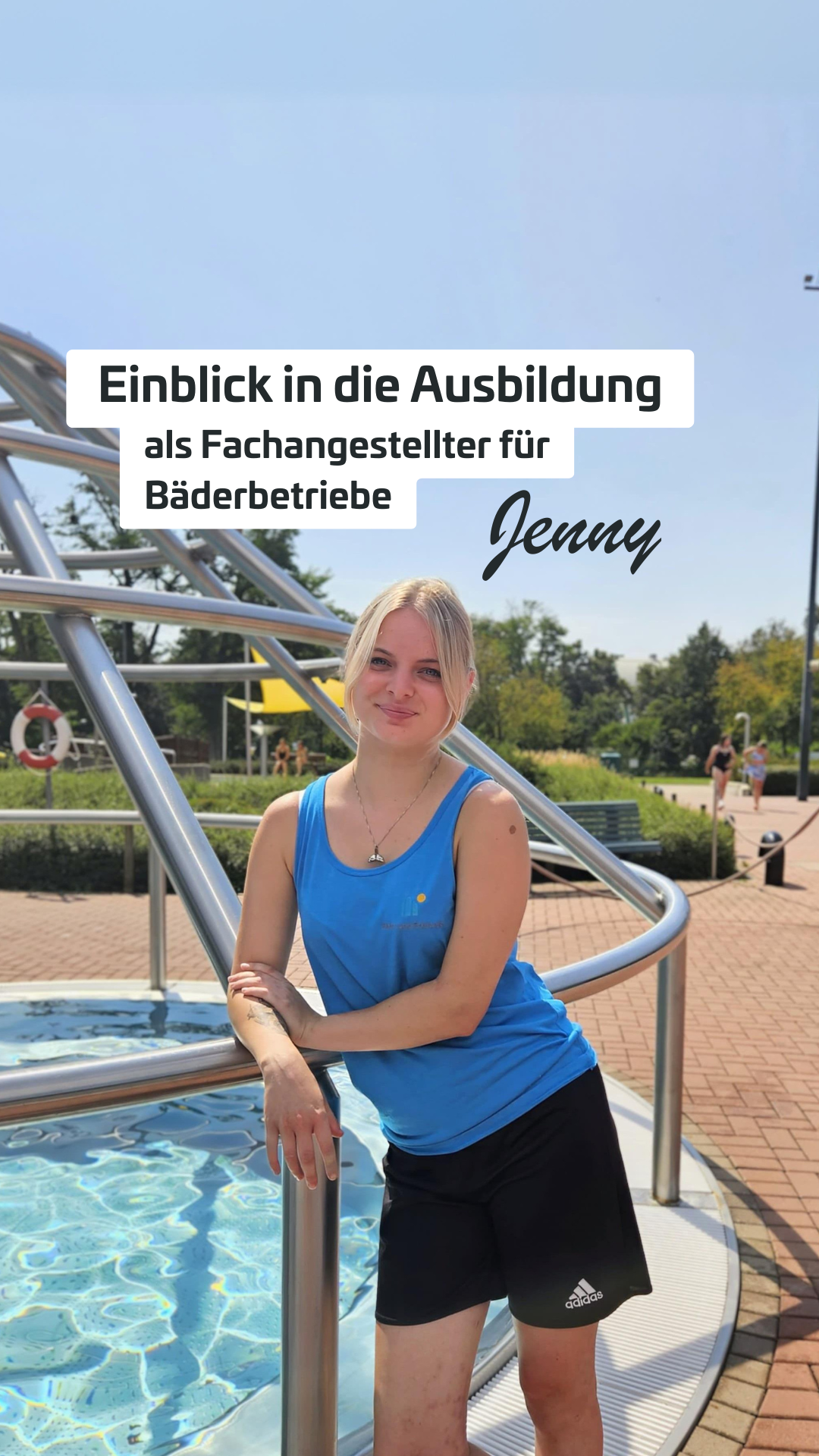 Was ich zukünftigen Azubis mitgeben möchte? Man sollte trainiert sein für die Ausbildung, denn für das Schwimmen braucht man ganz andere Muskeln, als im Fitnessstudio oder im Handball, was ich früher gemacht habe. In der Berufsschule lernt man viel Chemie, Physik, Biologie und Technik, das sollte man wissen. In Zukunft würde ich gern noch mehr Kurse geben, wie Aquafitness und Babyschwimmen."