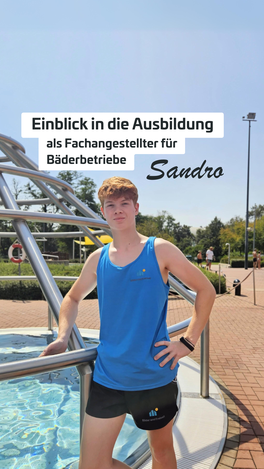 Was ich an meinem Beruf besonders mag, ist die Vielfalt: Von Technik über Kursangebote und die Saunalandschaft bis hin zur Sicherheitsgewährleistung – es gibt immer etwas Neues zu tun. Außerdem habe ich viel Kontakt mit Menschen und komme schnell mit ihnen ins Gespräch. Das macht den Arbeitsalltag spannend und abwechslungsreich. Jetzt hoffe ich, nach der Ausbildung übernommen zu werden und weiter hier arbeiten zu können.“